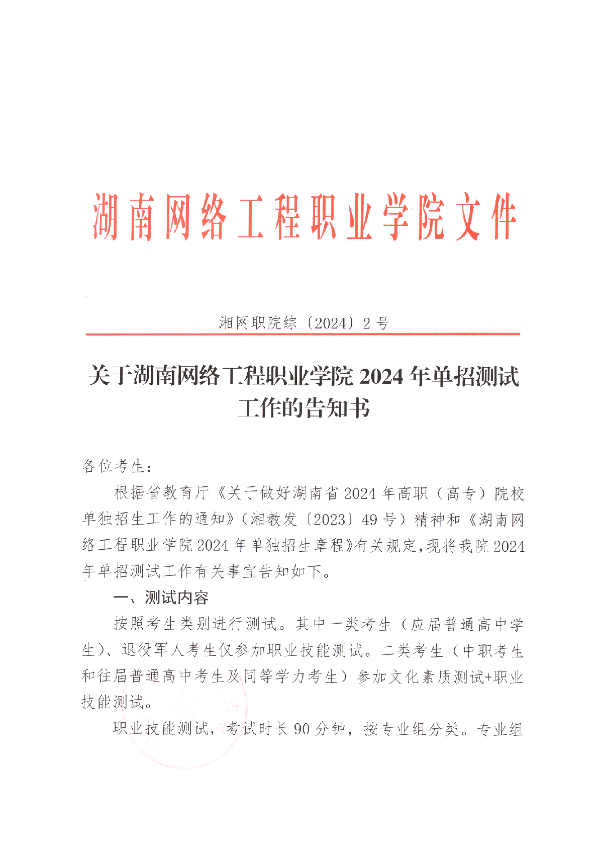 2.關(guān)于湖南網(wǎng)絡(luò)工程職業(yè)學(xué)院2024年單招測試工作的告知書.pdf